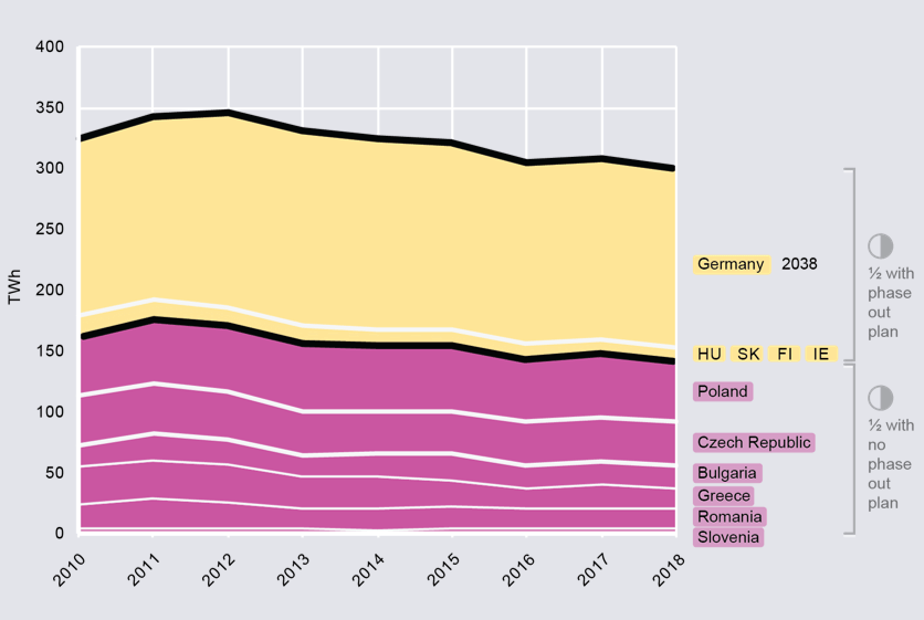Power generation from lignite (the dirtier, brown coal) fell by only 3% in 2018.