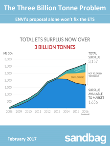 Sandbag’s new analysis of European emissions in 2016 reveals that the EU ETS has hit a new record of 3 billion tonnes of surplus EUAs, including both volumes available to the market and those destined for the MSR.
